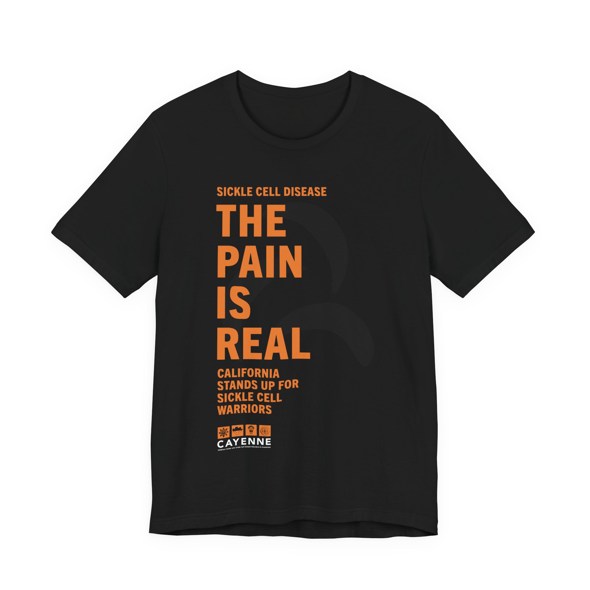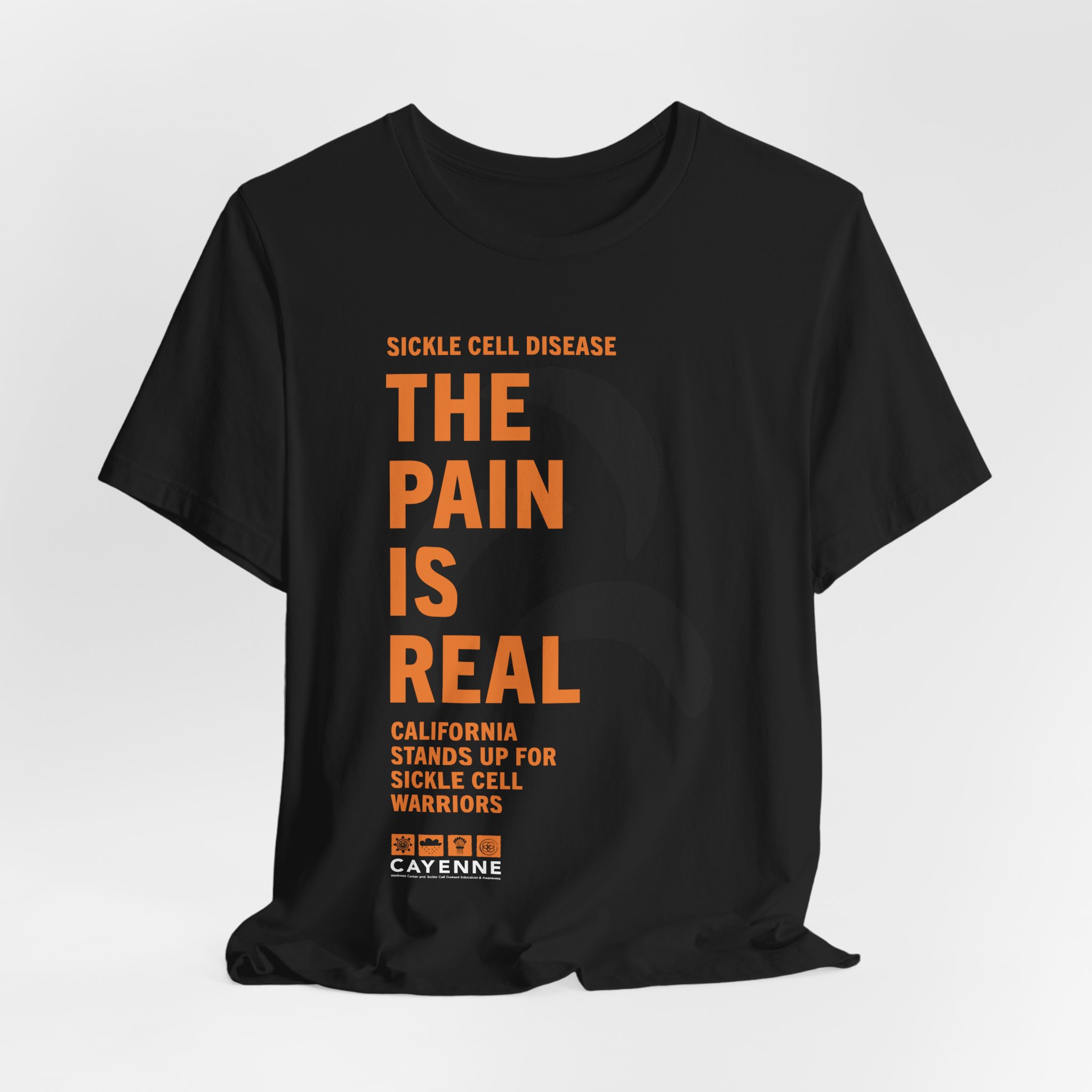 This tee speaks with quiet strength. Built from soft, organic combed ring-spun cotton, it drapes comfortably while carrying a clear message: “The Pain Is Real” — a bold, empathetic statement for those living with sickle cell disease and the people who stand by them. The deep black canvas and high-contrast orange lettering give the design a serious, urgent feel without being flashy. Wear it for Advocacy Day, support group meetups, or simple days out to silently spark conversations, raise awareness, and show solidarity.